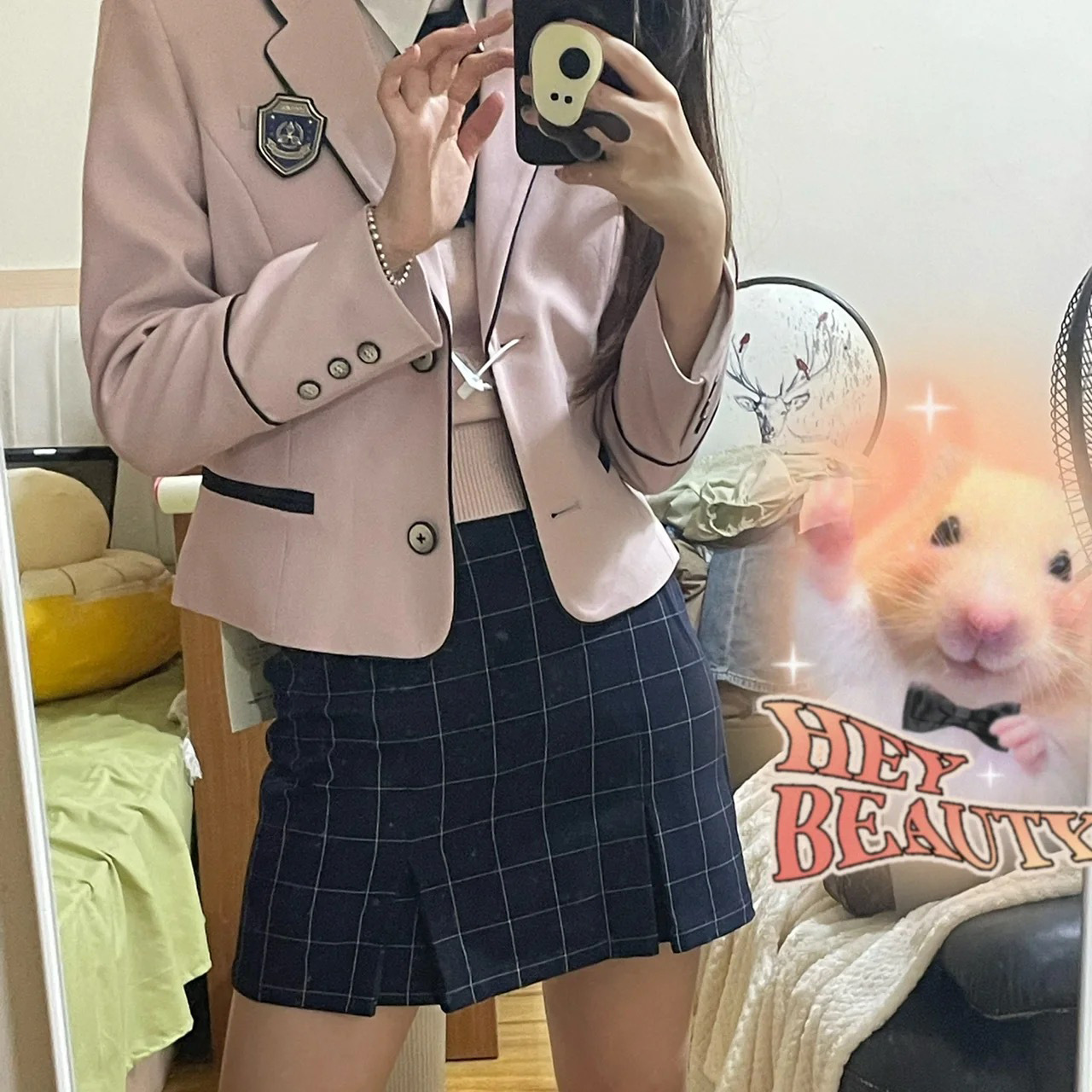 Jiangnan Road Korean drama college style JK uniform small suit women's autumn and winter pure desire hip skirt schoolmate vest women's coat
