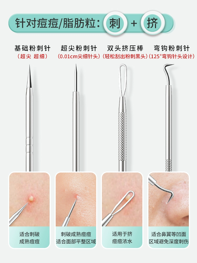 Jianmei Chuangyan Ultra-fine Acne Needle Set Cell Clip Blackhead Removal Tweezers Scraping Closed Mouth Squeezing Acne Removal Needle Tool