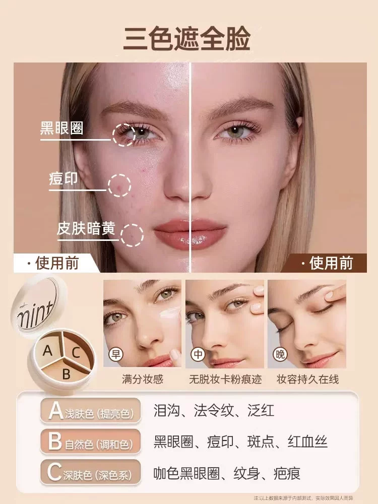 Jiazhi recommends three-color concealer palette official flagship store genuine cover for men and women to cover dark circles, acne marks and spots