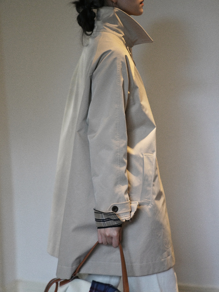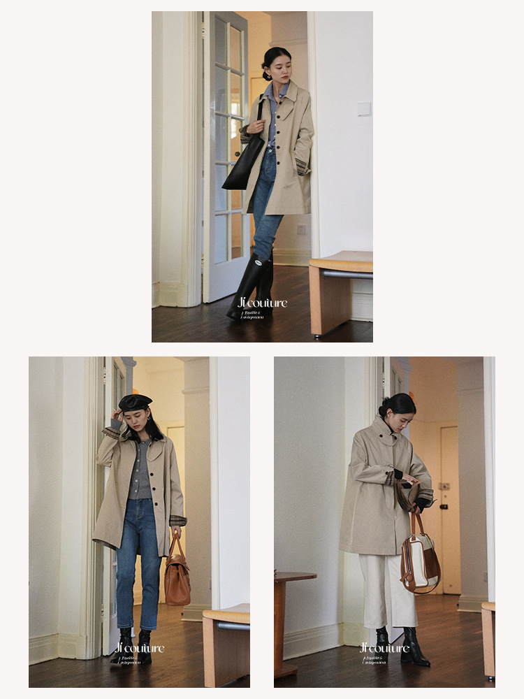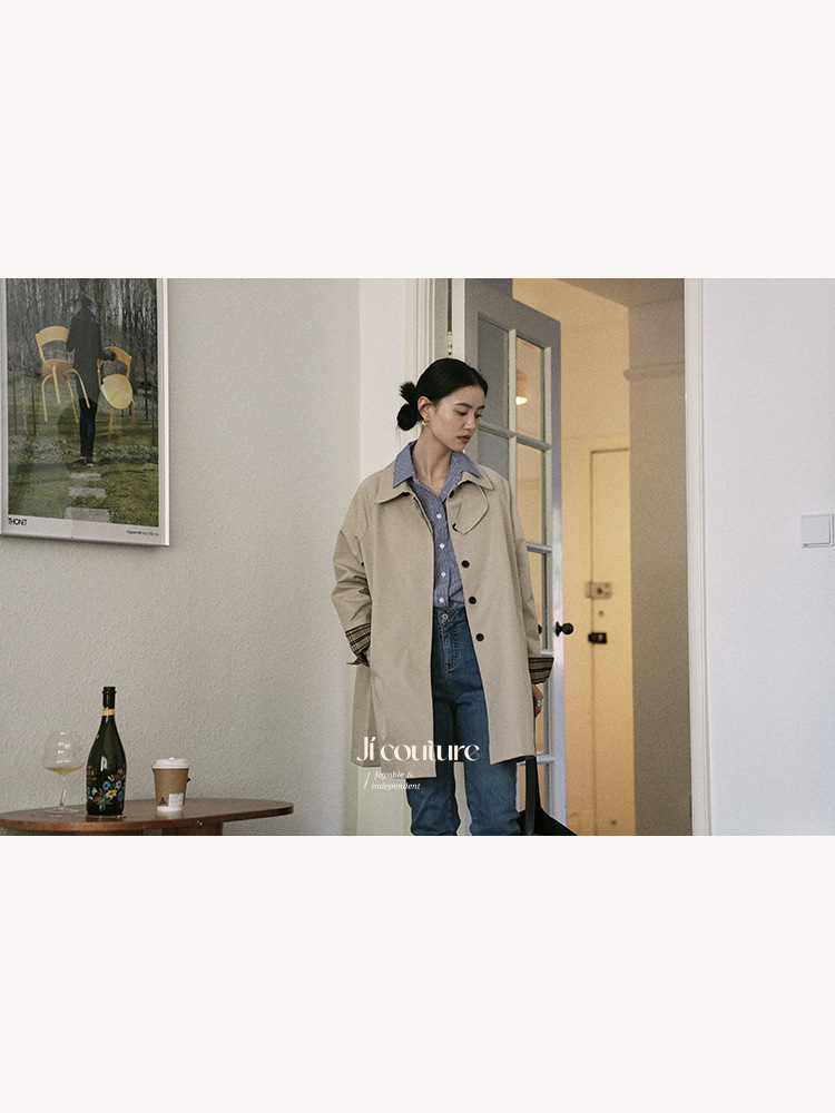 | nameOriginal | Jicouture Plaid stitching mid-length hunting trench coat women's autumn French loose khaki overcoat |