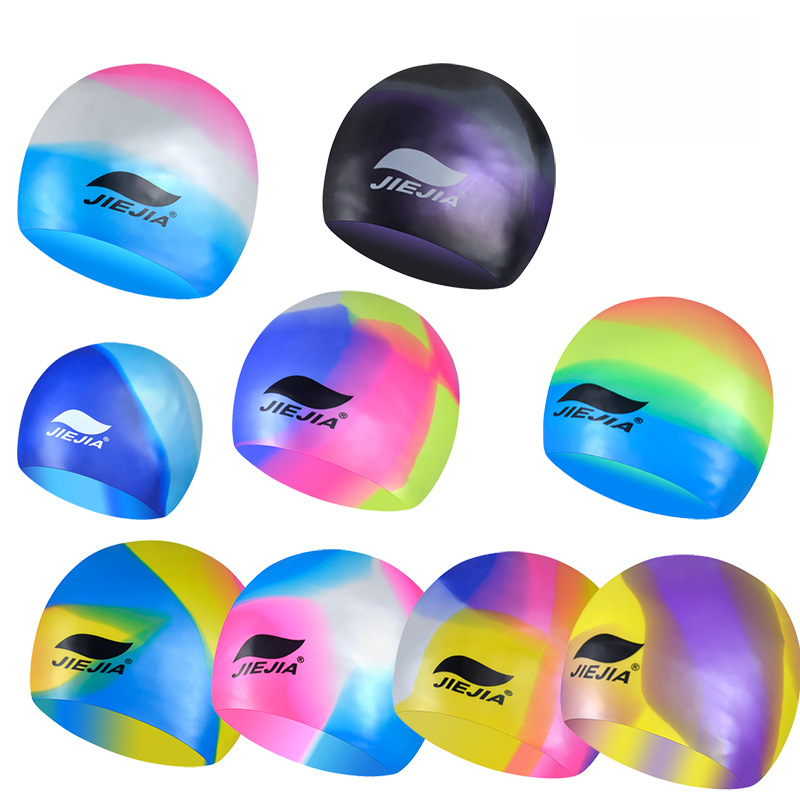 Jie Jia Jie Jia silicone adult swimming cap elastic colorful men and women children waterproof swimming cap multi-color optional wholesale