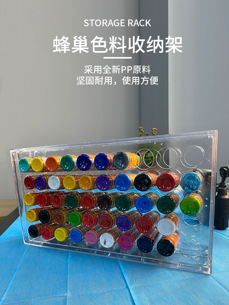 Jie tattoo equipment color material display rack acrylic storage and arrangement rack honeycomb color material rack can be hung on the wall