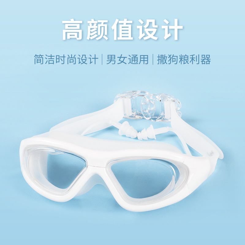 | nameOriginal | Jiehu large frame swimming goggles HD transparent swimming goggles waterproof anti-fog 8150 myopia men's and women's one-piece earplugs swimming goggles |