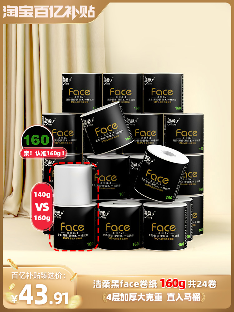 | nameOriginal | Jierou face roll paper 160g large weight 24 rolls toilet paper easy to flush toilet paper affordable paper towels |