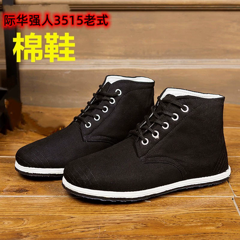Jihua 3515 winter high-top warm black cotton shoes for middle-aged and elderly men wool felt old Beijing cotton shoes old-fashioned cotton shoes