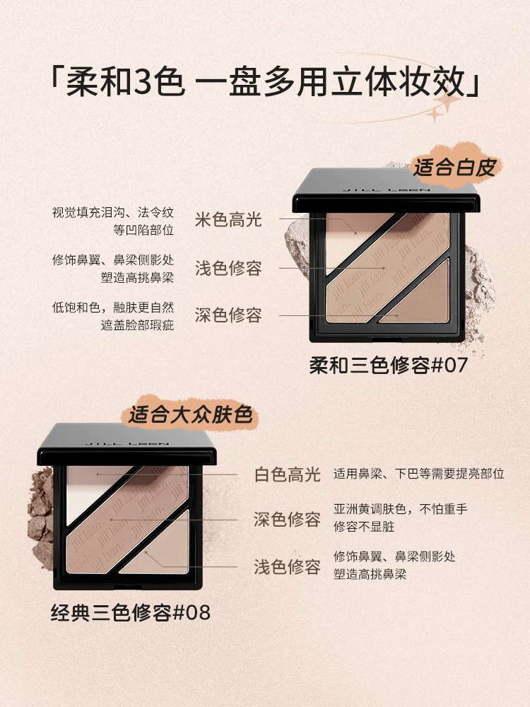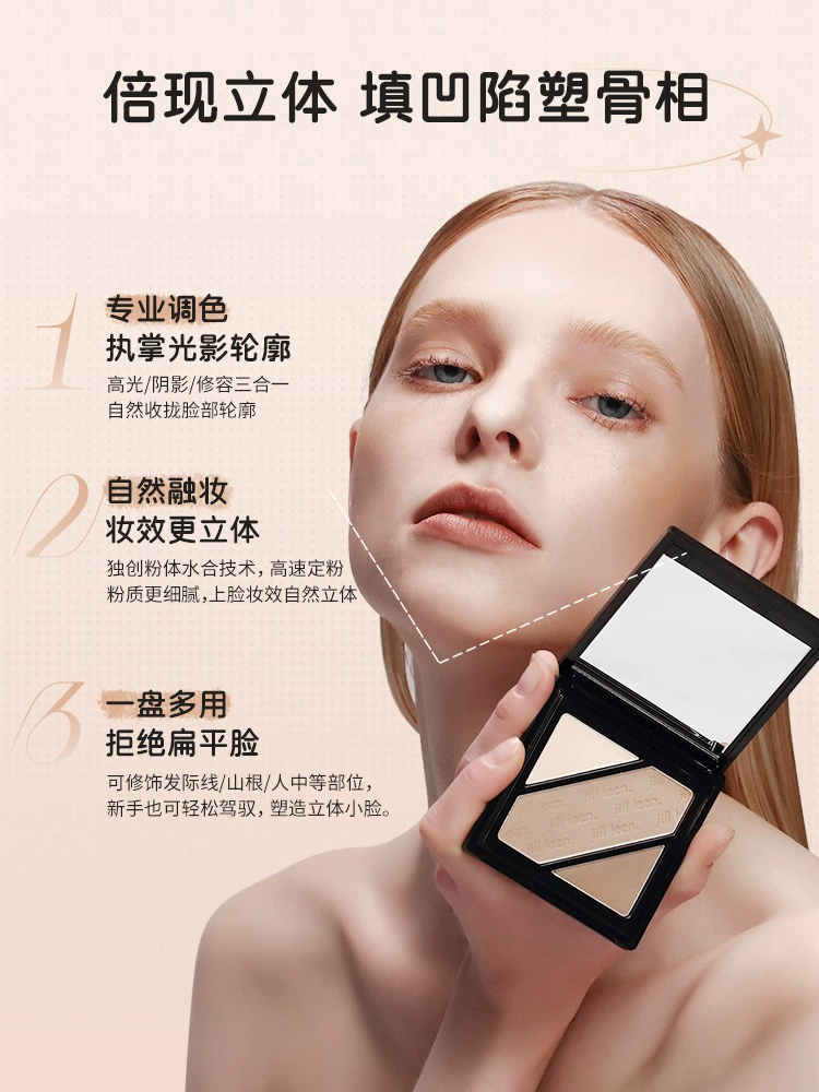 | nameOriginal | jillleen two-color contouring three-color shadow nose shadow powder silhouette highlight matte brighten hairline all-in-one plate for women |