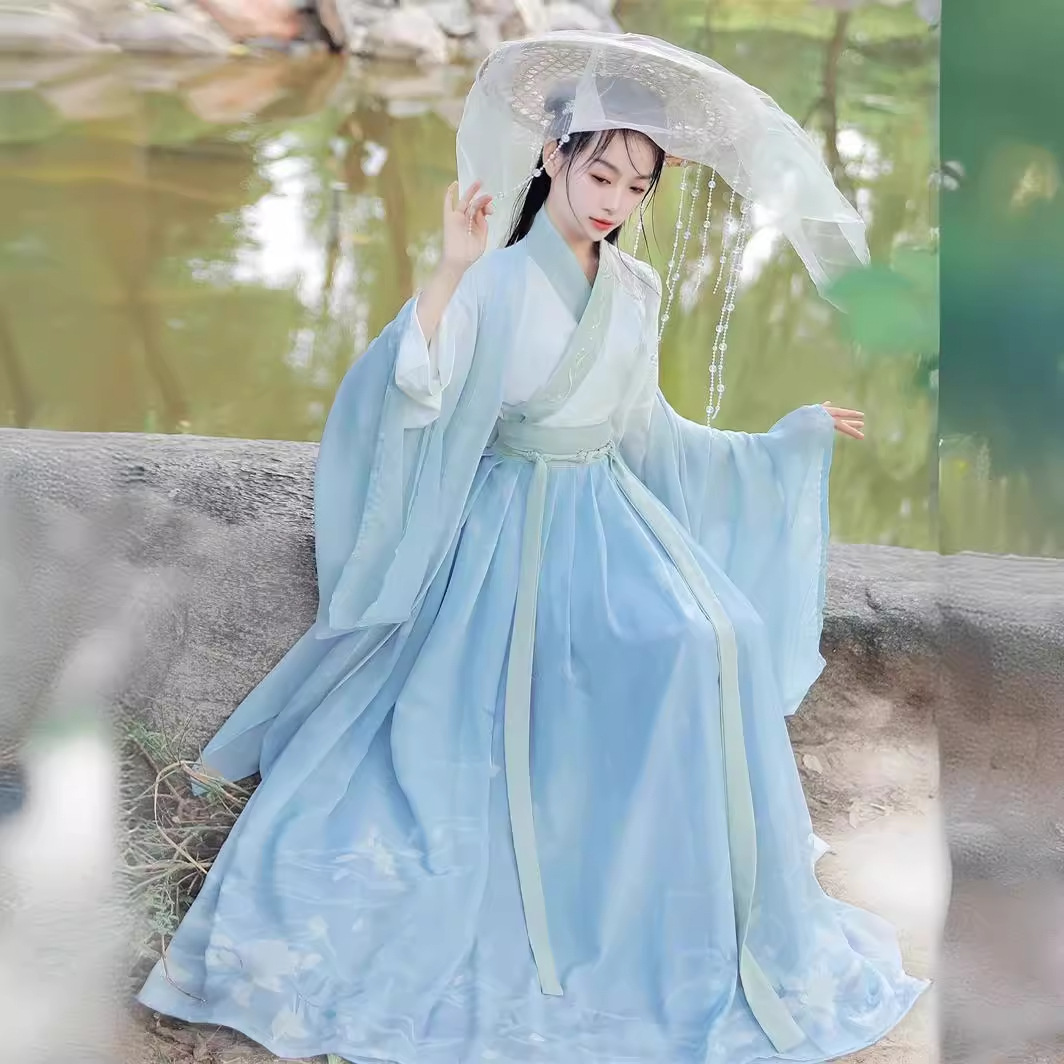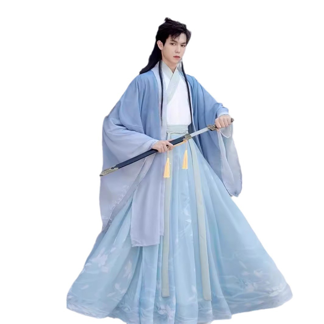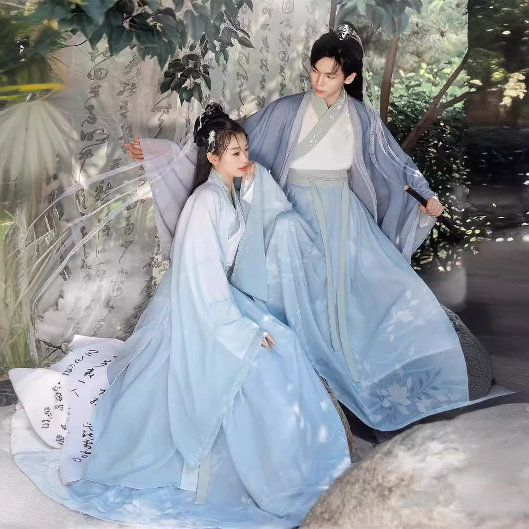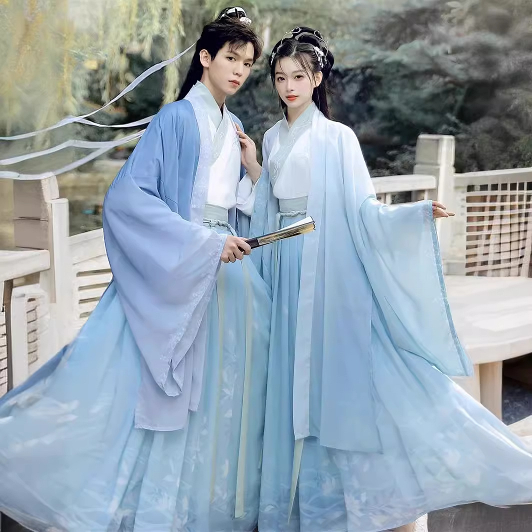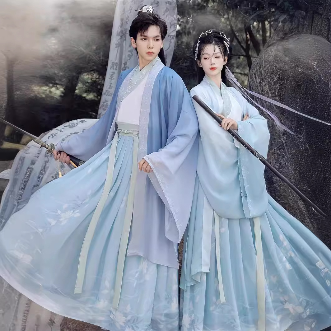 Jin Hanfu men's and women's 2024 New style seamless spring and summer waist cross collar skirt couple's costume fairy ancient costume