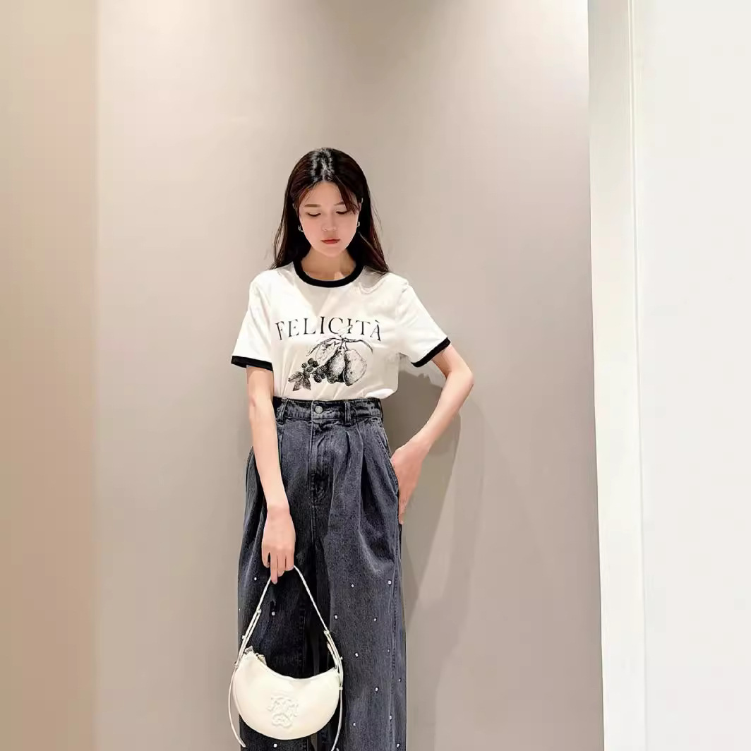 | nameOriginal | [Jin Yazi] S family spring and summer new Joker short sleeve color matching printing casual straight round neck T-shirt 24047 |