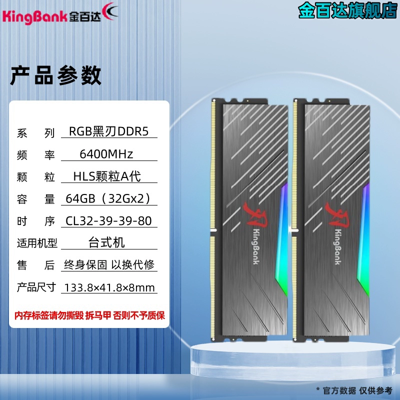 Jinbaida 16G/32G Set D5 6000 6400 6800 Desktop Memory Blade Black Armor Series Hynix A