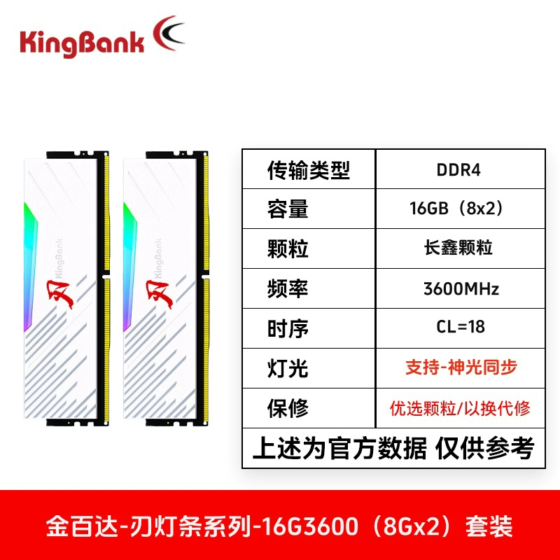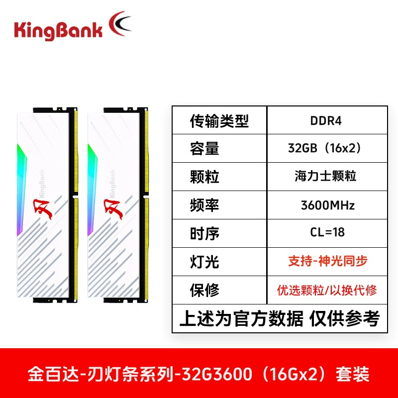 | nameOriginal | Jinbaida white blade 8Gx2 ddr4 memory stick black blade 32G16Gx2 light strip 3200 16G3600 blade C16 |