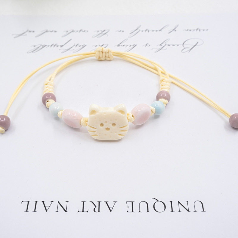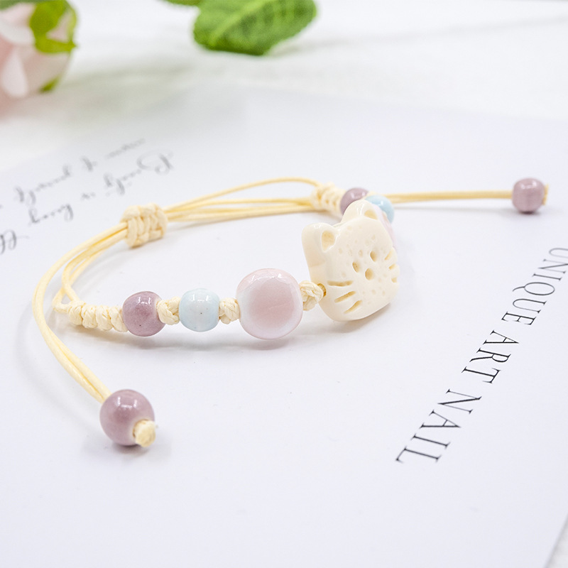| nameOriginal | Jingdezhen Ceramic Accessories New Hand-woven Hand-rope Cat Bracelet with Texted Color-free Bracelet for Summer Women |