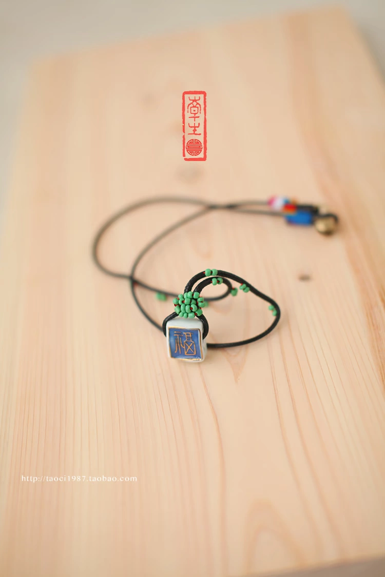 Jingdezhen Ceramic Jewelry Creative Jewelry Purely Handcrafted Ethnic Style Small Bells Blessing Necklace Pendant