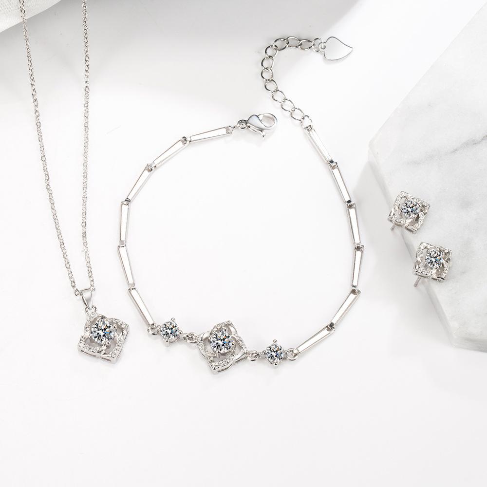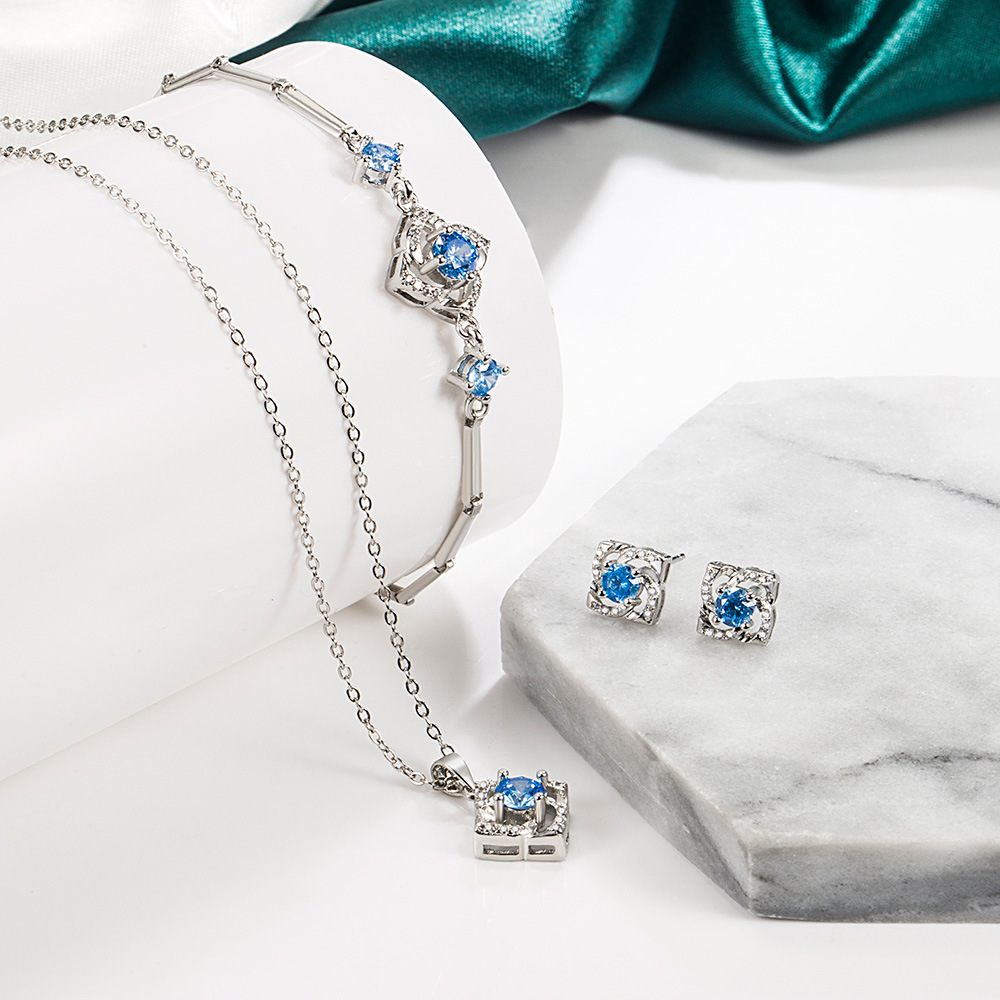 | nameOriginal | Jingdong Tmall Fashion Happiness Four-leaf Clover Necklace Pendant Set Women's All-match Blue Diamond Earrings Romantic Leaf Grass Bracelet |