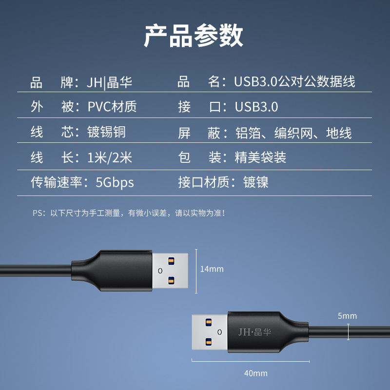 | nameOriginal | Jinghua 3.0USB data line usb3.0 copy line male to male mobile hard disk box high speed data line factory |