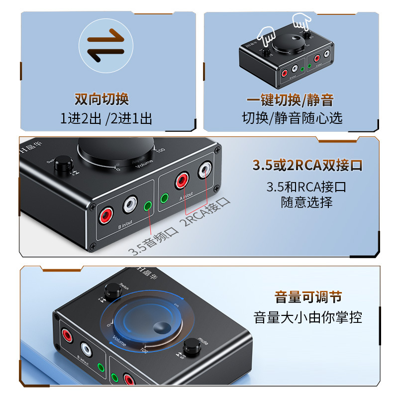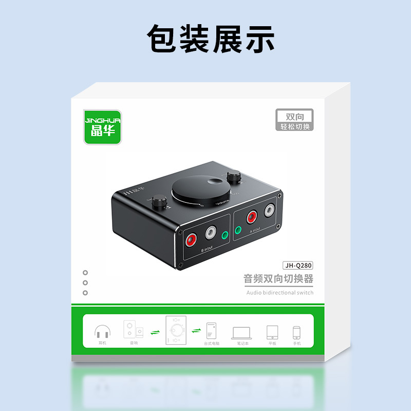 | nameOriginal | Jinghua Audio Switcher one-in-two-out-two-in-one-out 3.5 and rca Lotus head optional two-way switching |