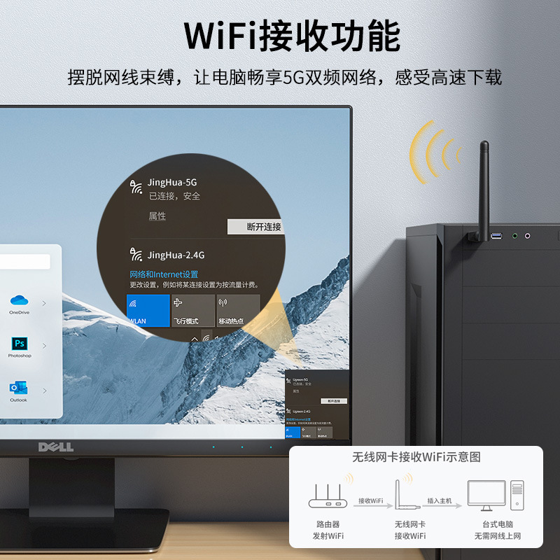 | nameOriginal | Jinghua drive-free USB3.0 wireless network card WIFI6 network dual-frequency 1800m high-speed transmission dovetail N454 |