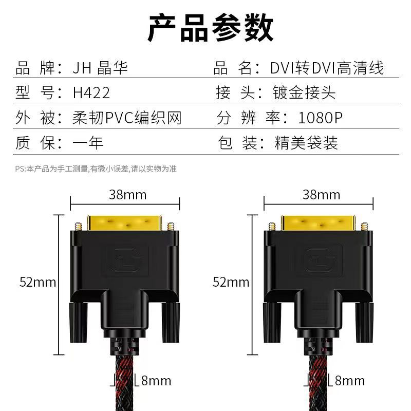 | nameOriginal | Jinghua DVI to DVi gold-plated plug double magnetic ring with braided 24 1 transmission line dvi24 1 line hd line |