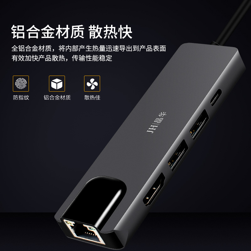 | nameOriginal | Jinghua type-c docking station to hdmi usb hub network card five-in-one laptop converter |