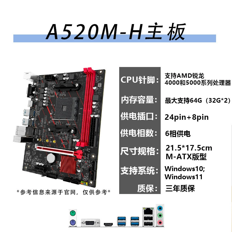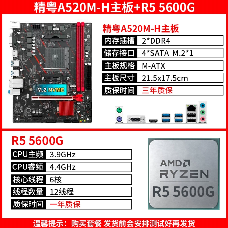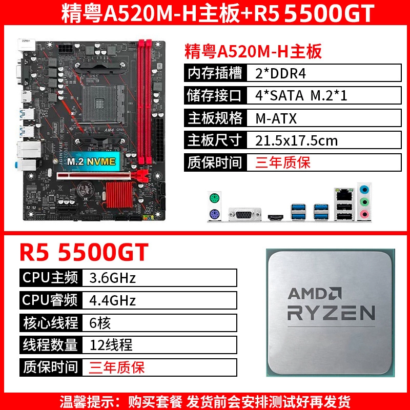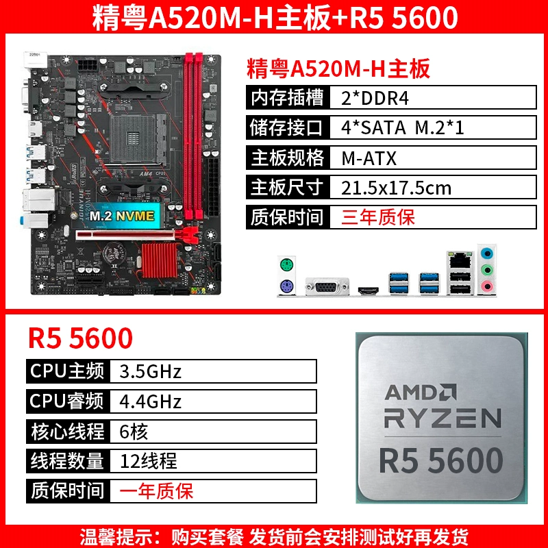 | nameOriginal | Jingyue A520M H motherboard AM4 Ryzen with AMD R5 5600 5600G 5500GT memory solid state set |