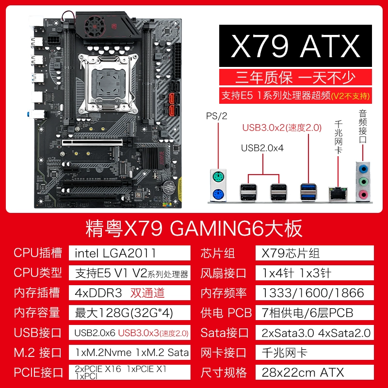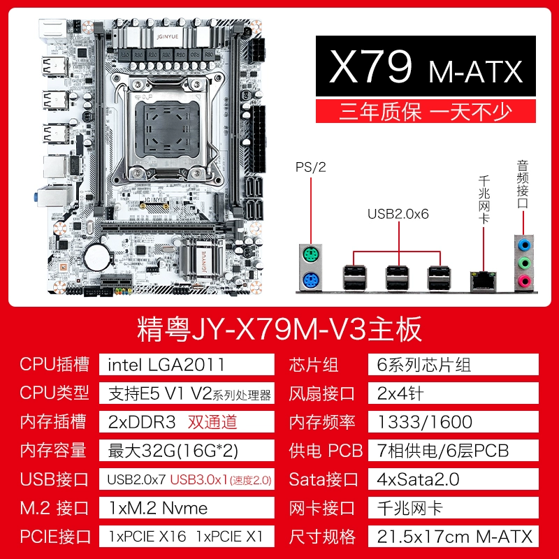 | nameOriginal | Jingyue X79/X99 motherboard computer desktop 2011 game CPU set dr3 studio multi-open E5 2680V2 |