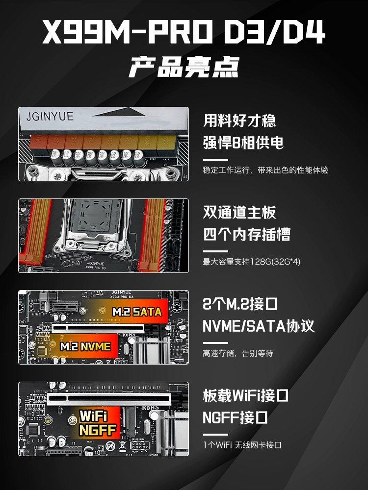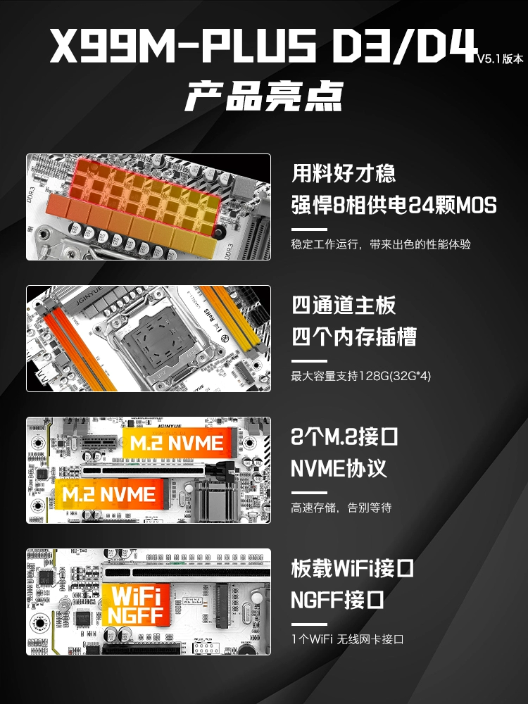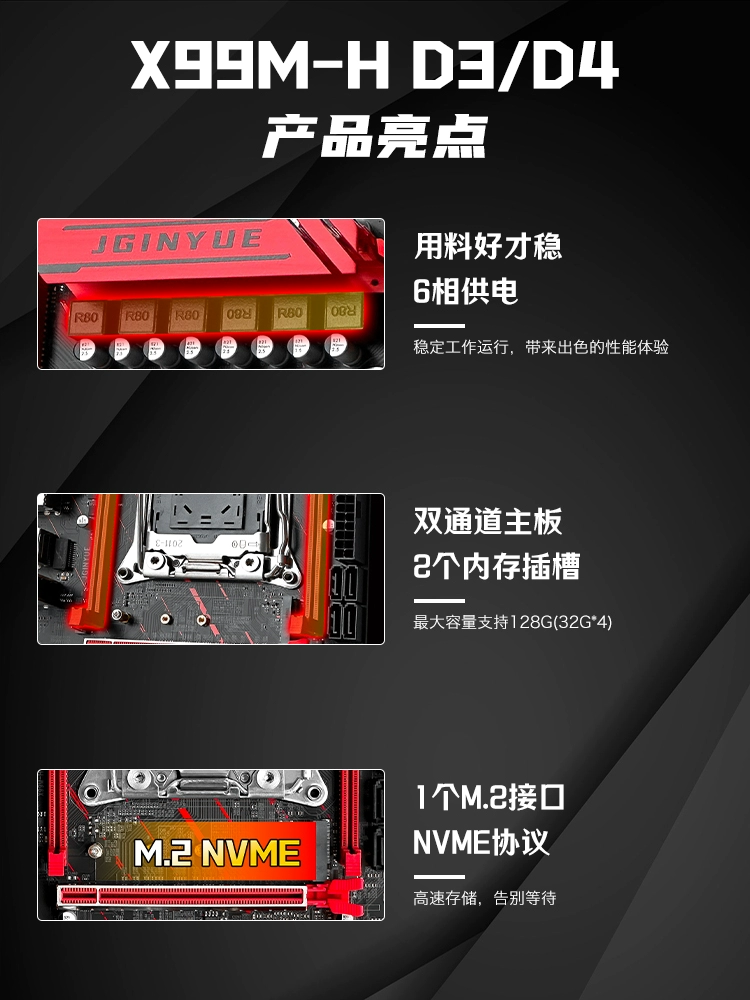 | nameOriginal | Jingyue X99 motherboard 2011-pin DDR3 four-channel desktop gaming CPU set E5 2666V3 2696V4 |