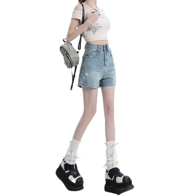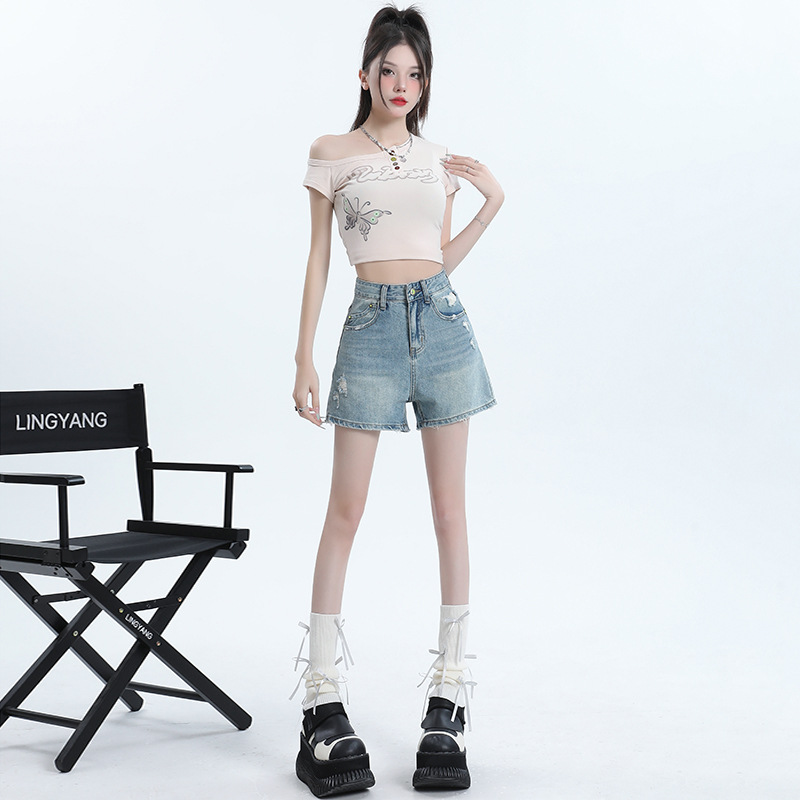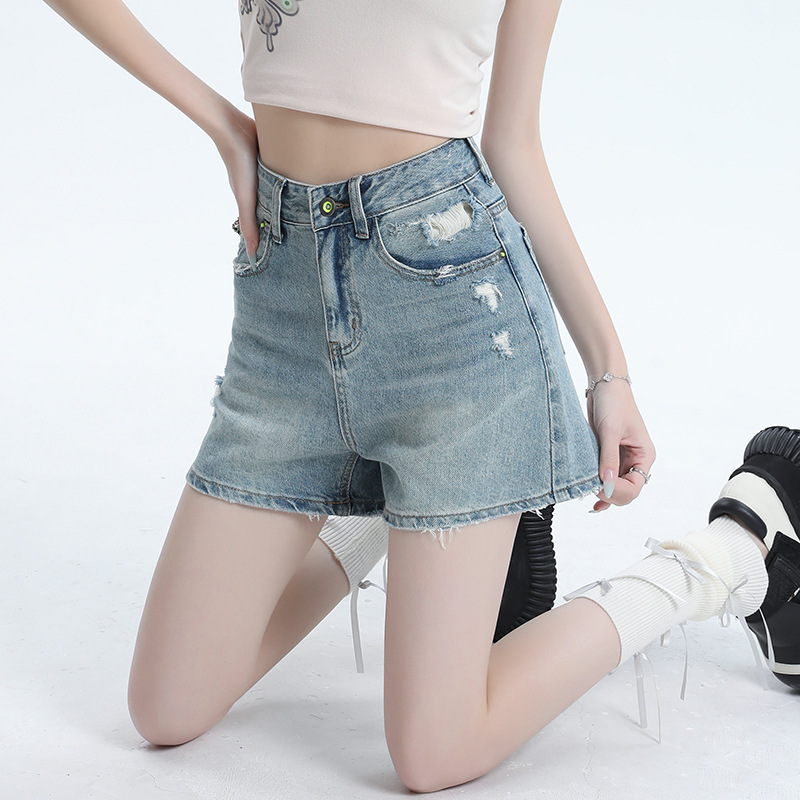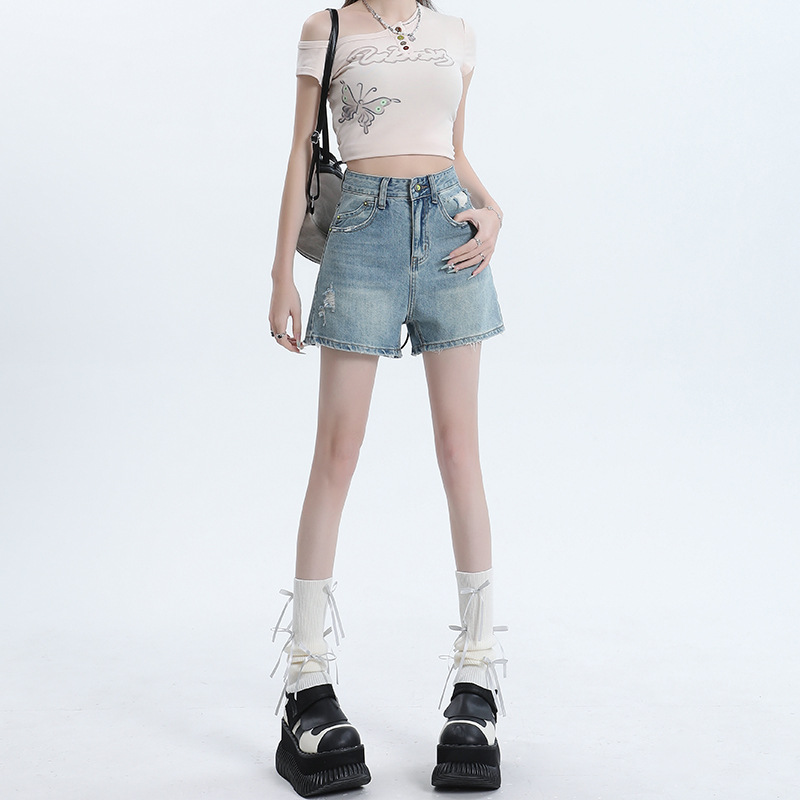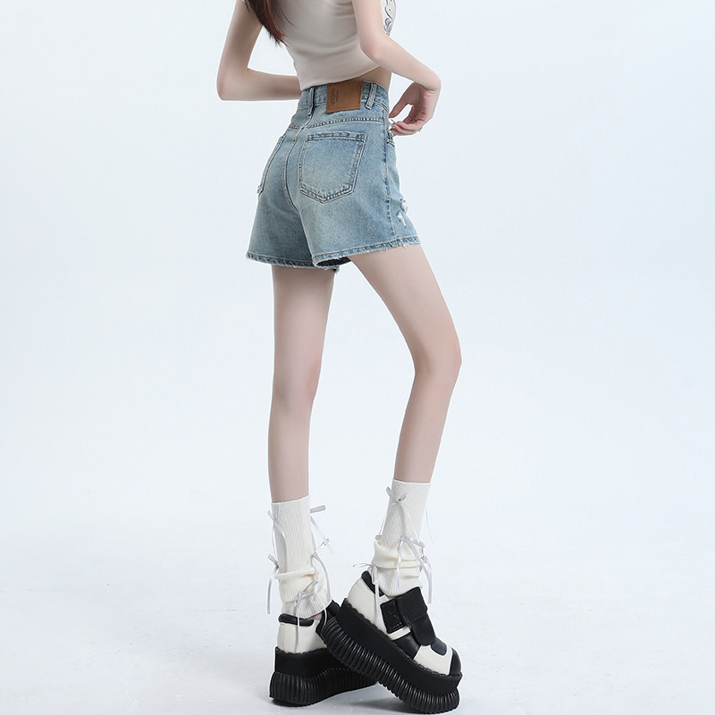 [Jinyin] American Retro High Waist Denim Shorts Women’s 2024 New Hot Pants for Spice Girls