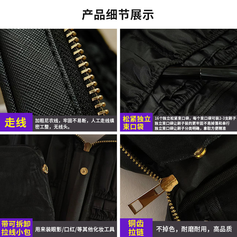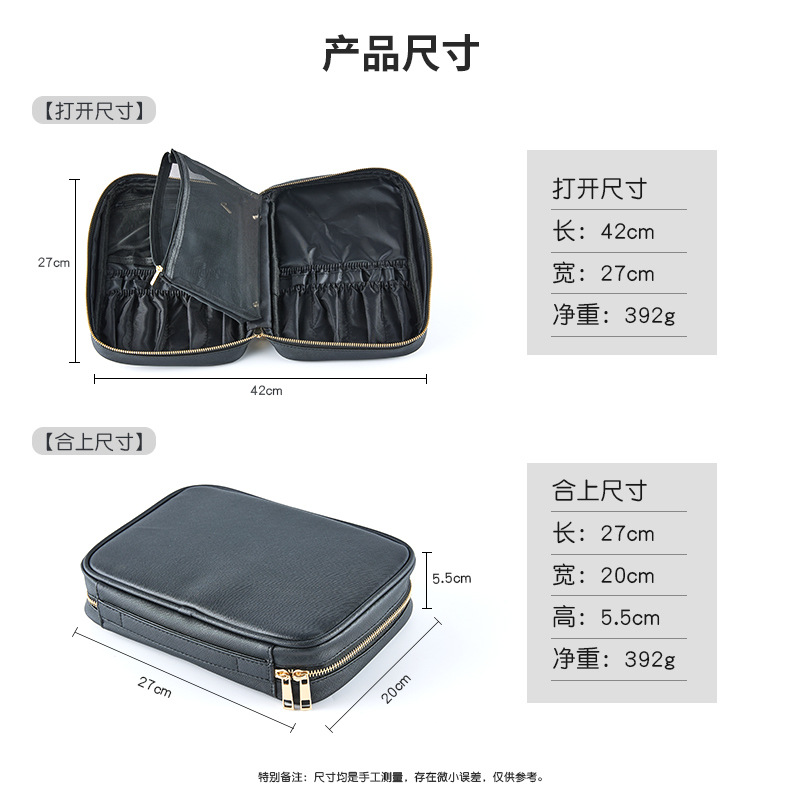 | nameOriginal | Jinyisheng leather copper tooth zipper makeup brush bag multi-purpose waterproof wear-resistant wet and dry separation portable makeup bag for women |