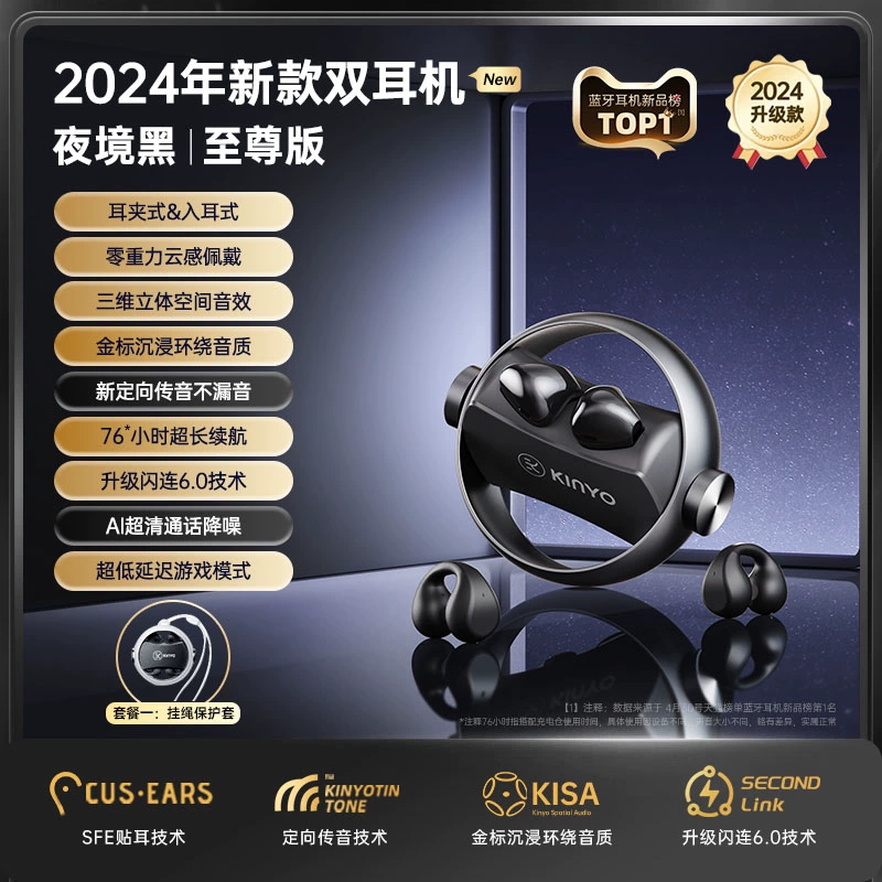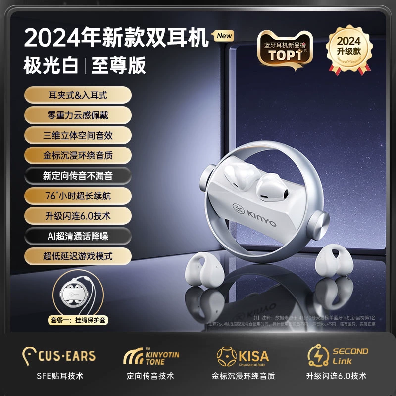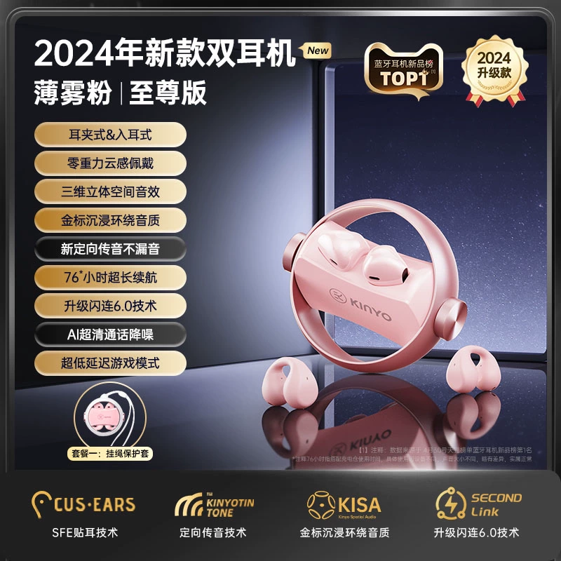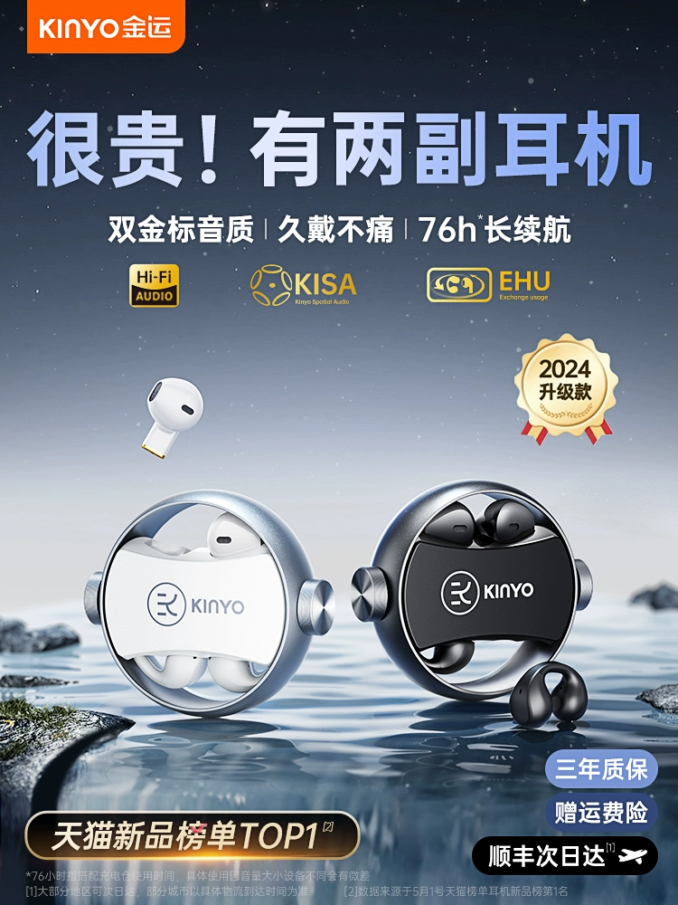 Jinyun Bluetooth headset 2024 new ear pinch into the ear type dual -use wireless open -length ultra -long battery life
