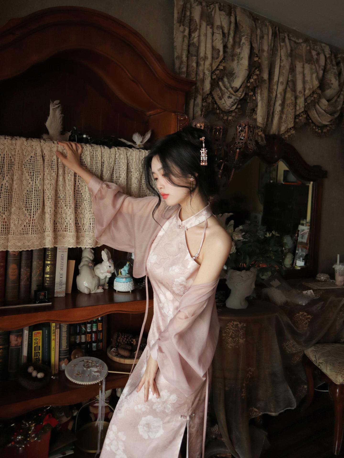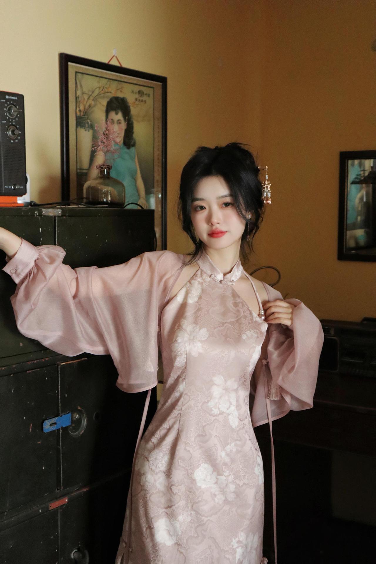 Jinyun flower New Chinese cheongsam National style mercerized satin surface sling dress Women’s Spring New