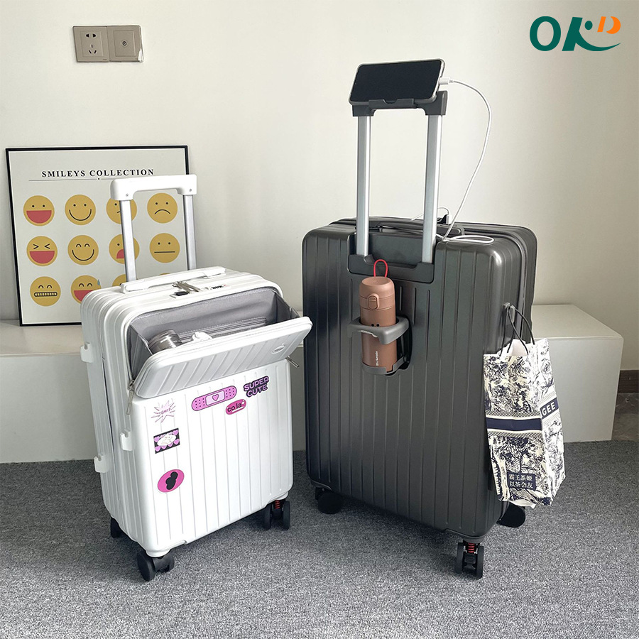 Jirui multi-functional front opening business luggage small trolley case universal wheel 20-inch boarding case female student