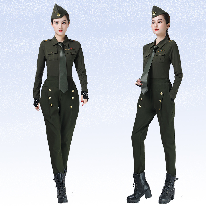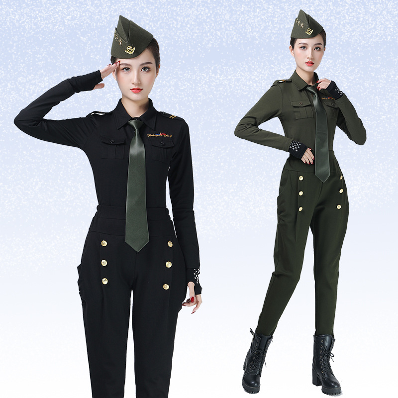 Jitterba Costume New Long Sleeve Lapel Army Green Black Eauteal Square Dance Performance Costume Sapiens Dance Top Women