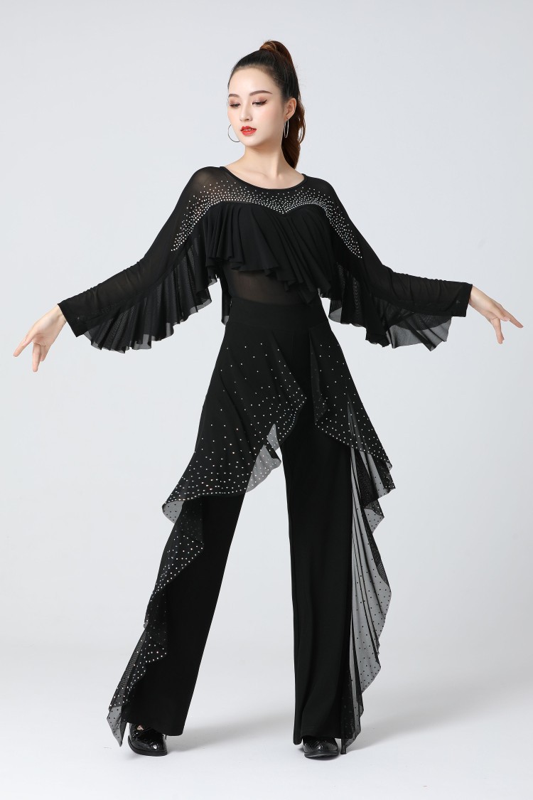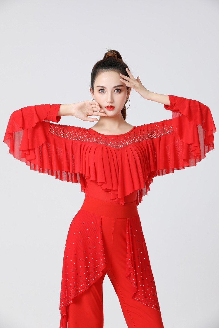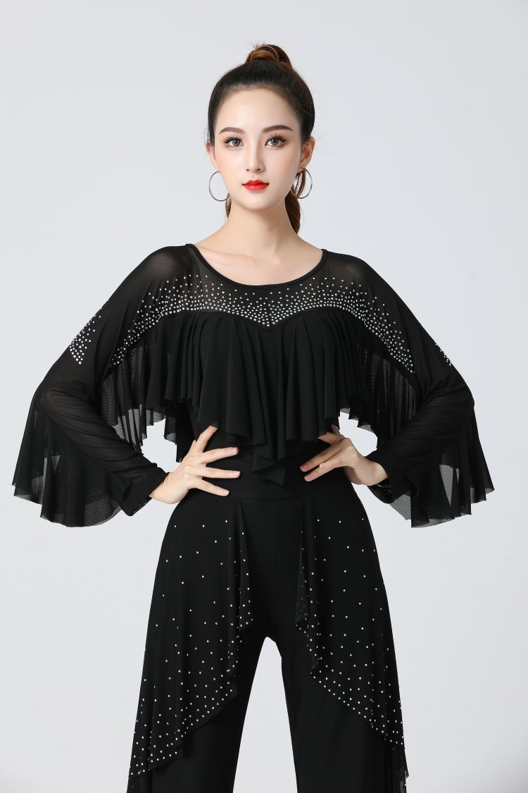 | nameOriginal | Jitterba Modern Dance Top Women's Latin Dance Practice Clothes Waltz Ballroom Long Sleeve Ruffled |