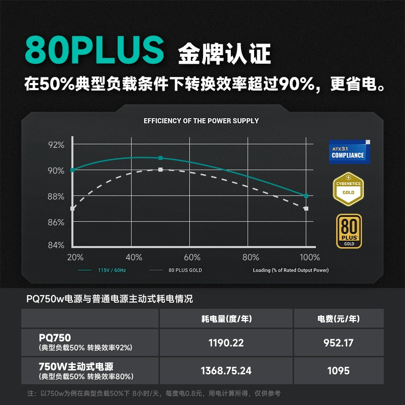 Jiuzhou Fengshen power supply 650w750w850W gold ruler PQG series gold medal atx full module power supply