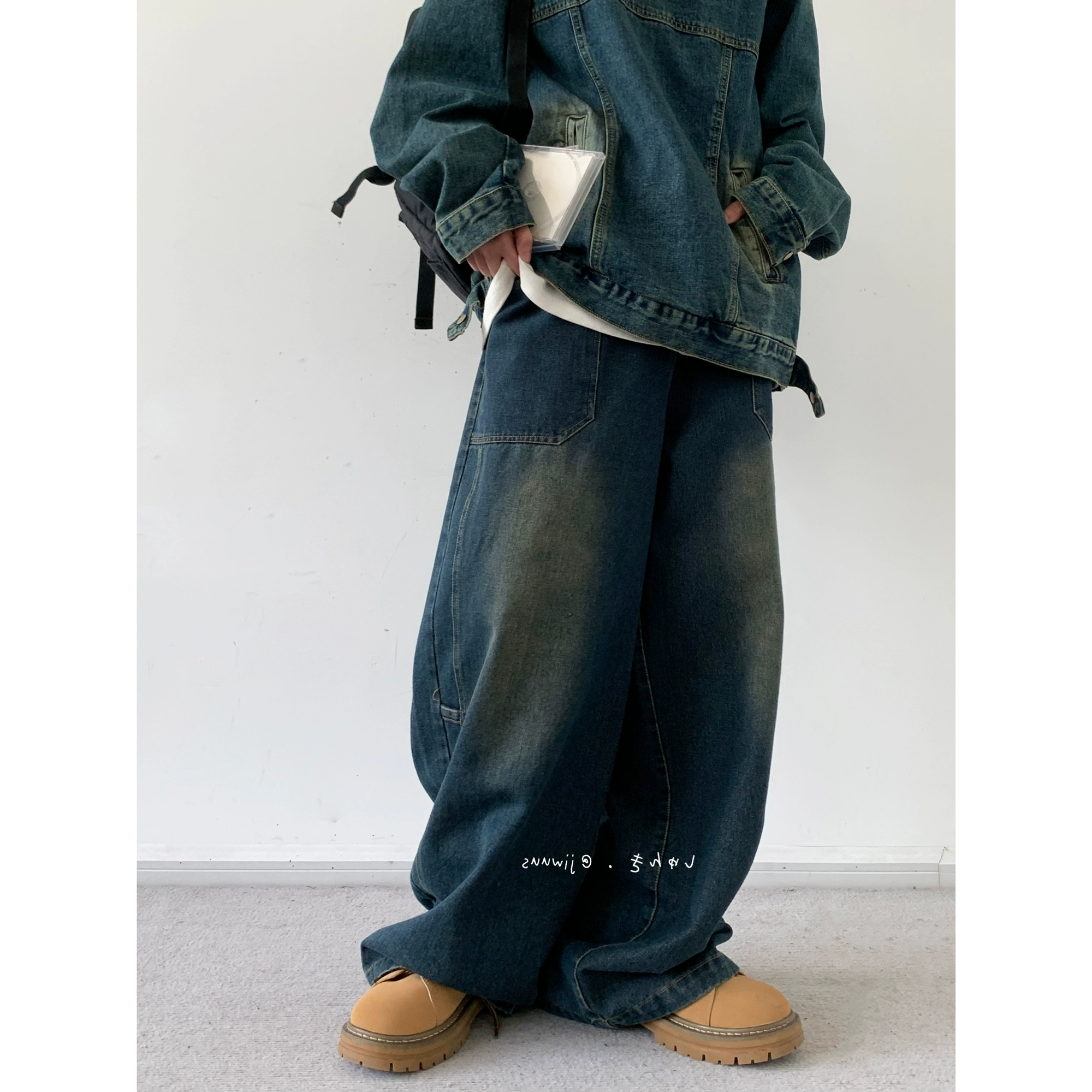 Jiwuus spring and autumn Japanese retro street half-high collar distressed denim jackets for men and women casual loose workwear jackets