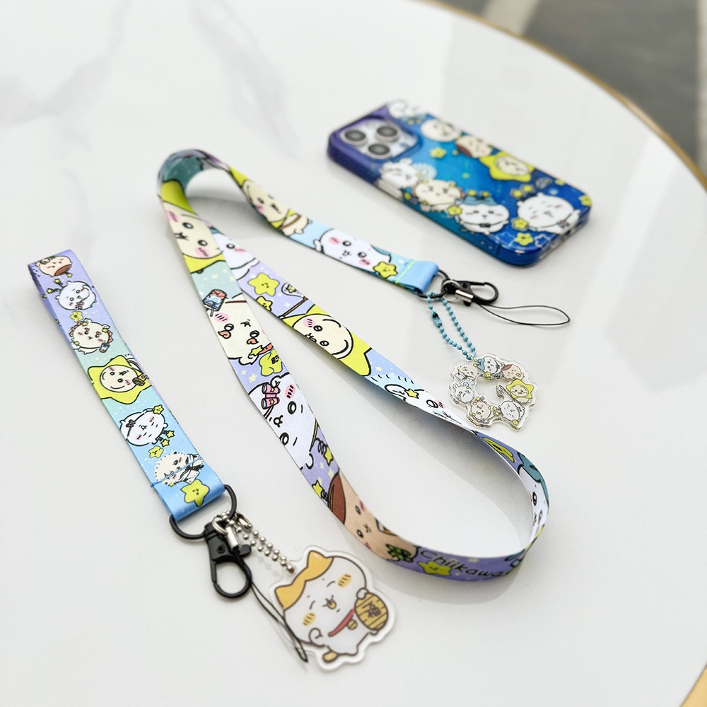 Jiyika Wow chiikawa Mobile Phone Anti-lost Lanyard Cartoon Gasket Clip Hanging Neck Wrist Strap Usaki Small Eight