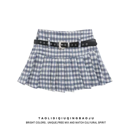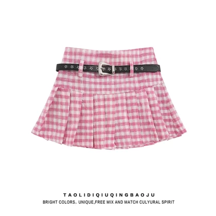 | nameOriginal | jk dopamine pink plaid niche half-length pleated skirt |