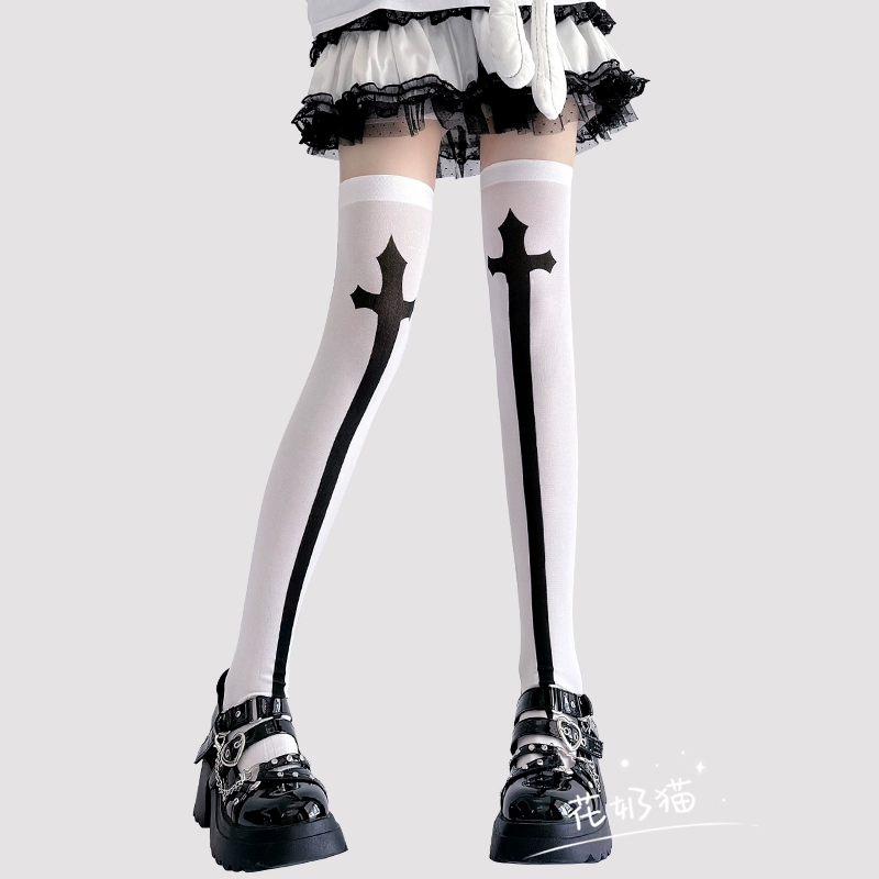 | nameOriginal | jk long knee socks female dark punk Halloween cross black stockings hot girl subculture thigh socks |