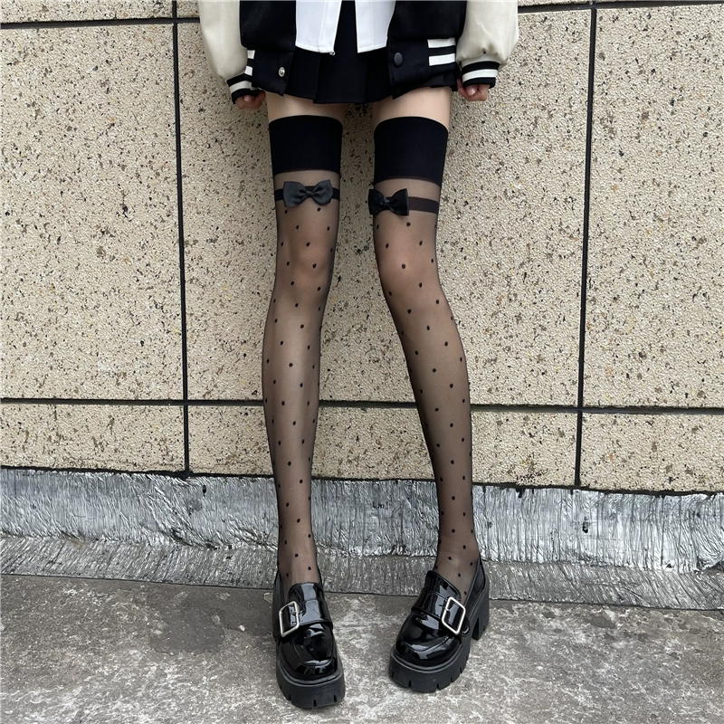 JK polka dot bow summer ultra-thin sexy black stockings