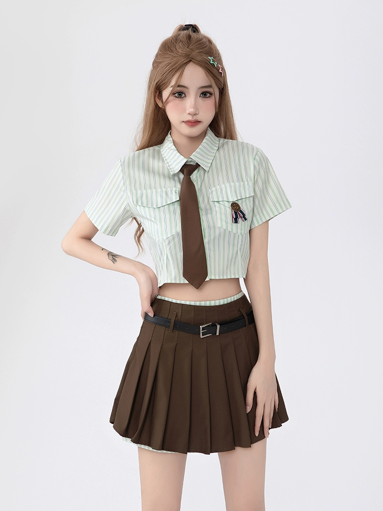 | nameOriginal | jk retro autumn college style straight pleated skirt suit |