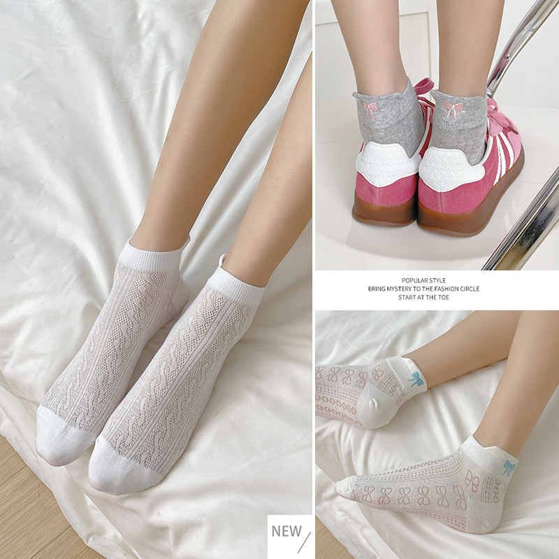 | nameOriginal | JK Socks Women's Summer Thin Heel Bow Embroidered Boat Socks Dark Pattern Ins Trendy Korean Style Sweet Short Tube Boat Socks |