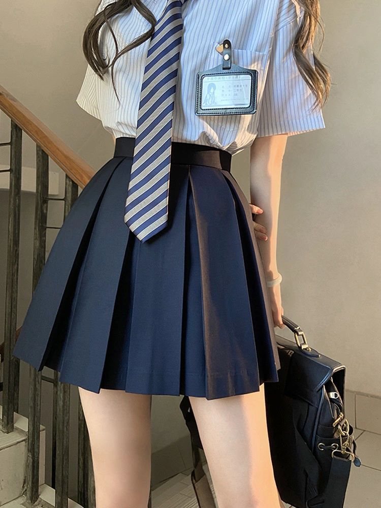 | nameOriginal | JK Uniform Box Pleated Skirt Cyan Basic Solid Color Half Pleated Skirt Student School Japanese High Waist Uniform Skirt |