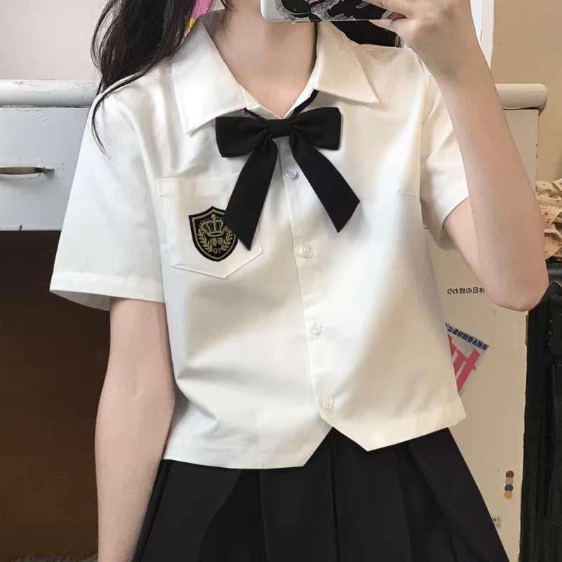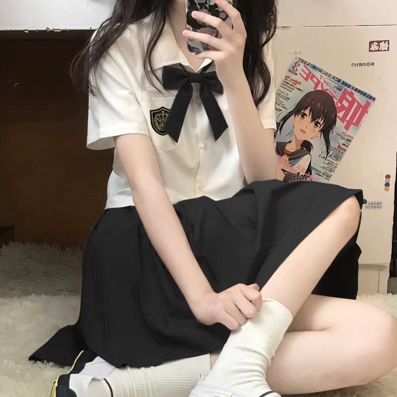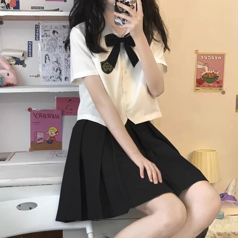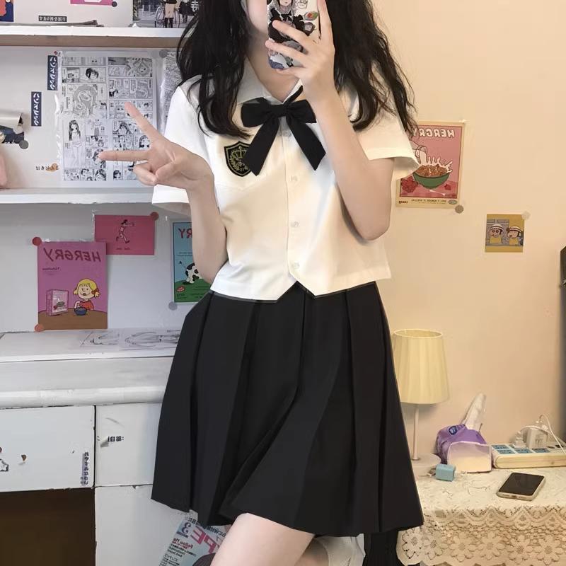 Jk Uniform College Style Short Sleeve Short Slim Shirt Small Top with Pleated Skirt Full Set Summer