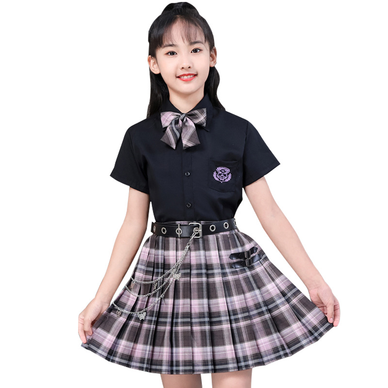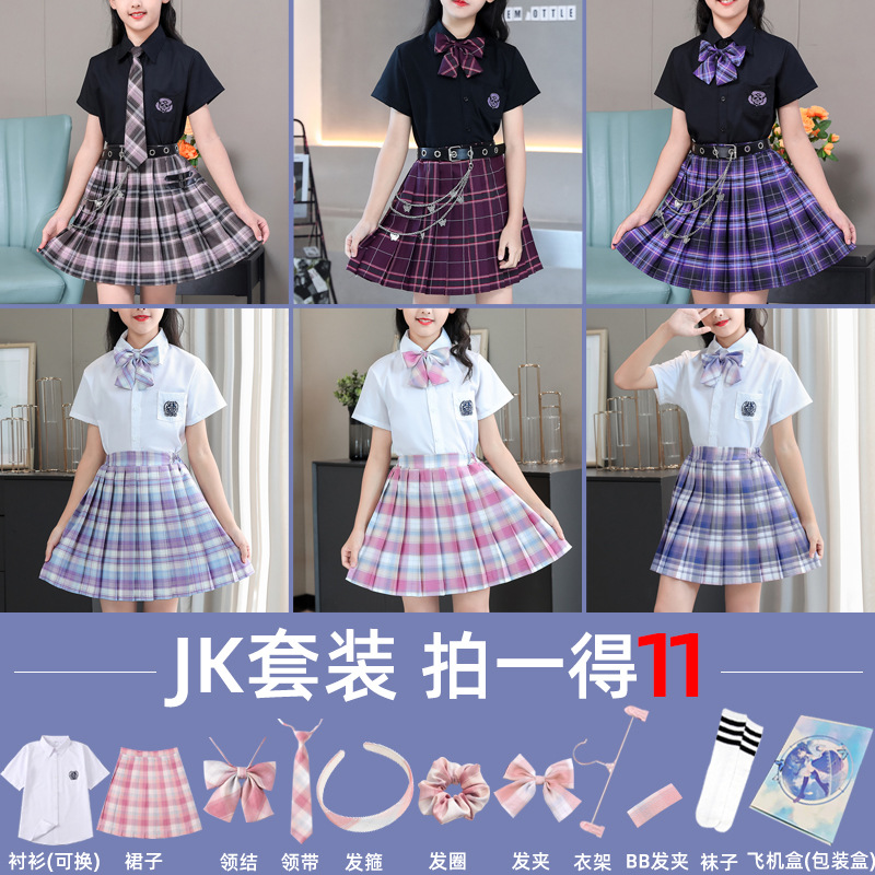 | nameOriginal | jk uniform suit girls' summer primary school children's pleated skirt jk skirt three-piece dark plaid skirt |