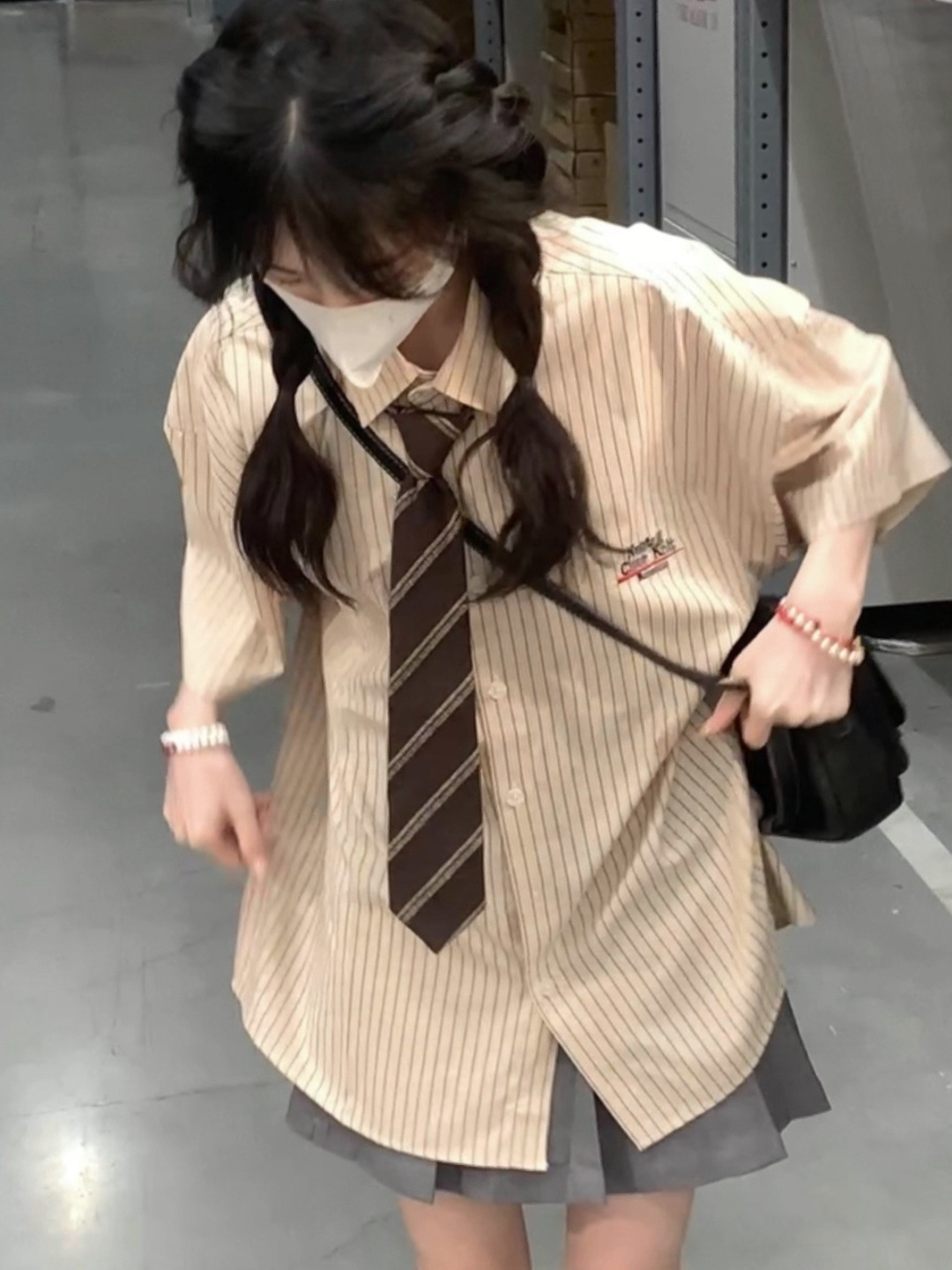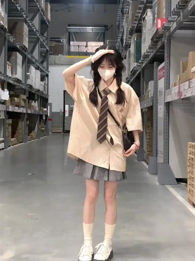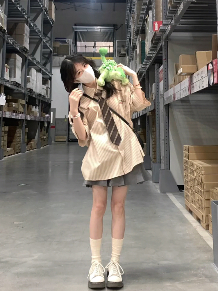 | nameOriginal | jk uniform suit spring/summer striped short-sleeved shirt women's design sense niche casual Japanese college style shirt skirt |