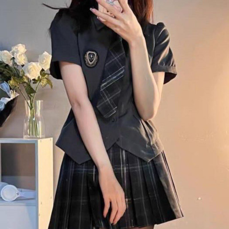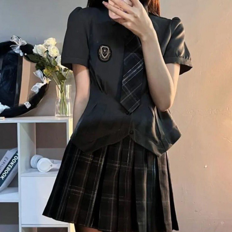 | nameOriginal | JK Uniform suit Women's Summer College Style Irregular Waist Shirt Plaid Pleated Skirt Spice Girl Two-Piece Set |