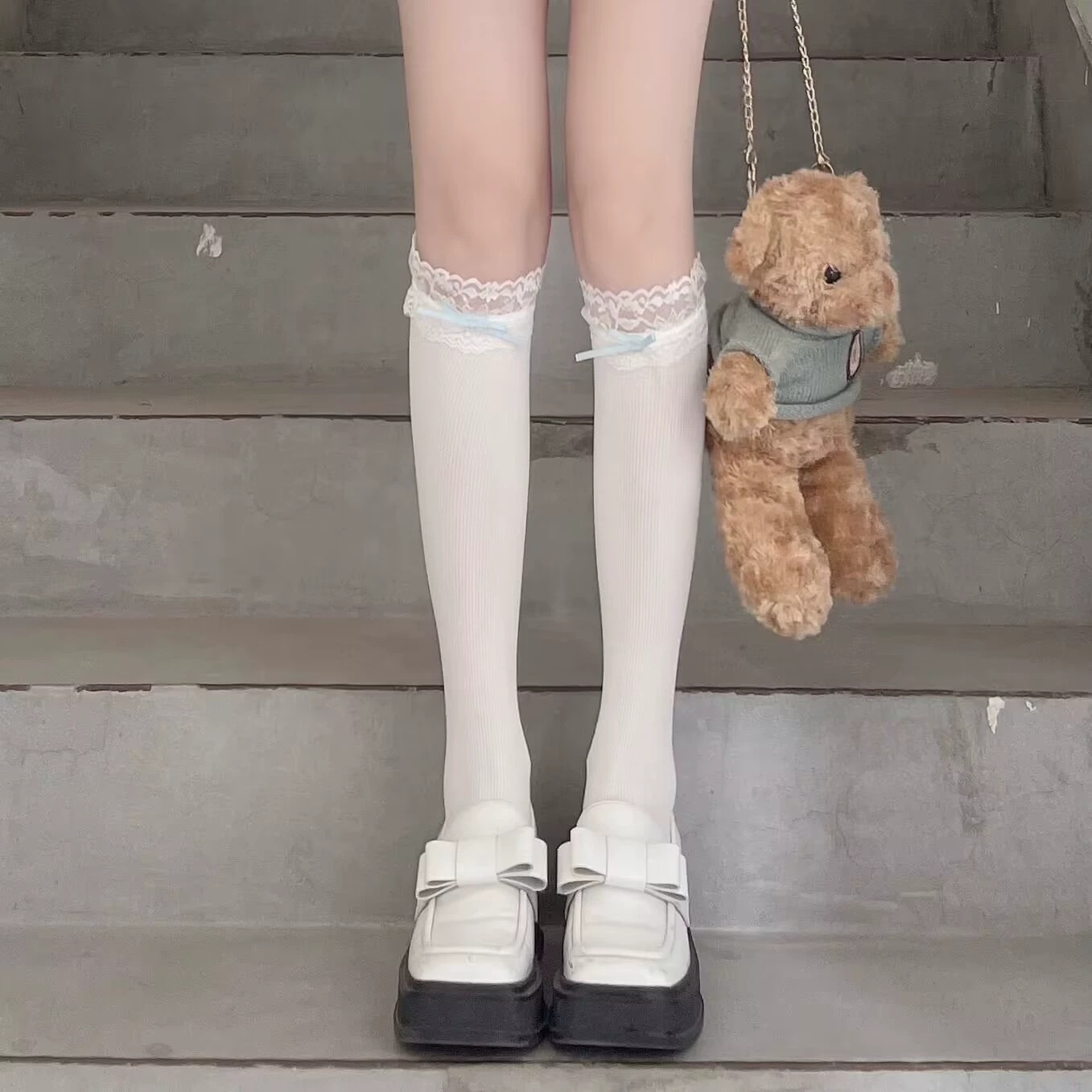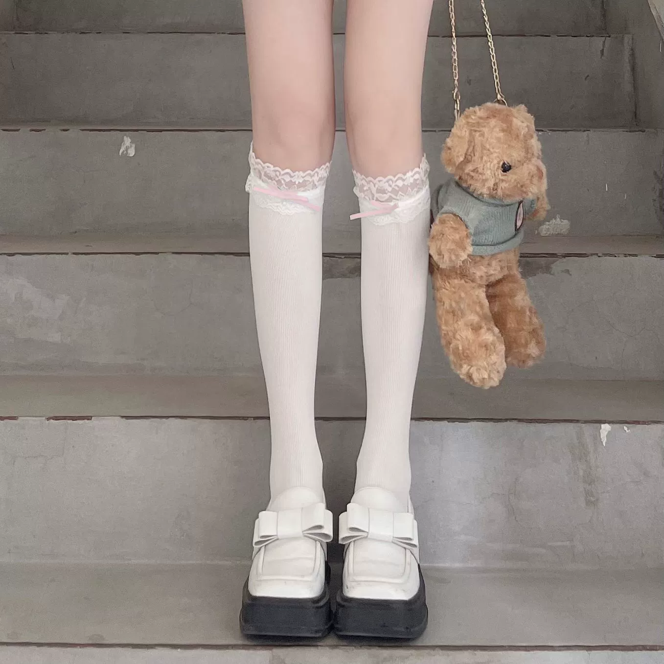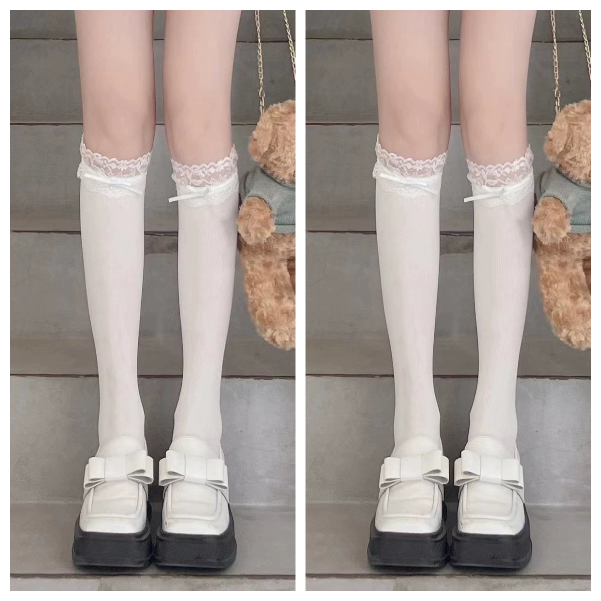 | nameOriginal | jk white pink velvet patchwork mid-length lace calf socks |