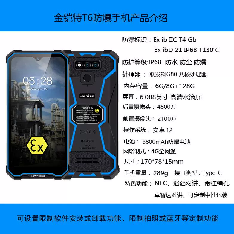 | nameOriginal | JKAITE Jinkaite T6 explosion-proof smartphone chemical plant petroleum gas EX intrinsic safety T4 public network intercom NFC |