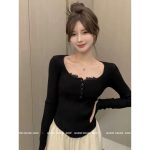 | nameOriginal | Jo Grey Slim-fit Square Collar Long-sleeved Knitted Sweater Women's Spring Pure Tight Sweater Super Figure Base Top |
