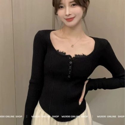 | nameOriginal | Jo Grey Slim-fit Square Collar Long-sleeved Knitted Sweater Women's Spring Pure Tight Sweater Super Figure Base Top |