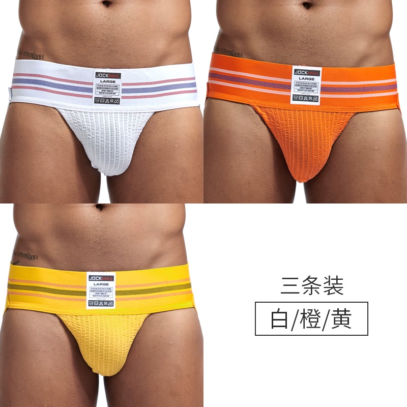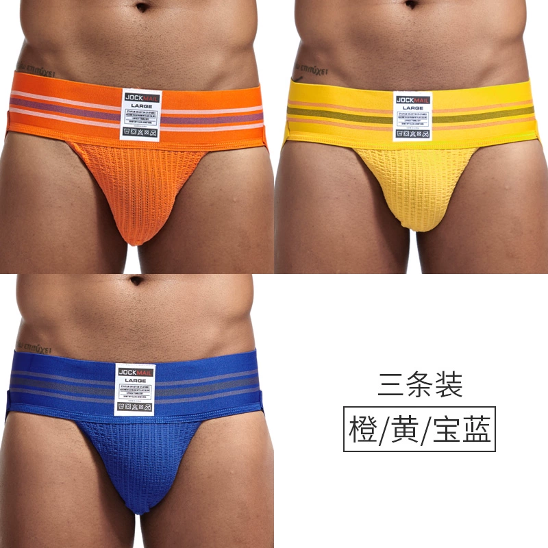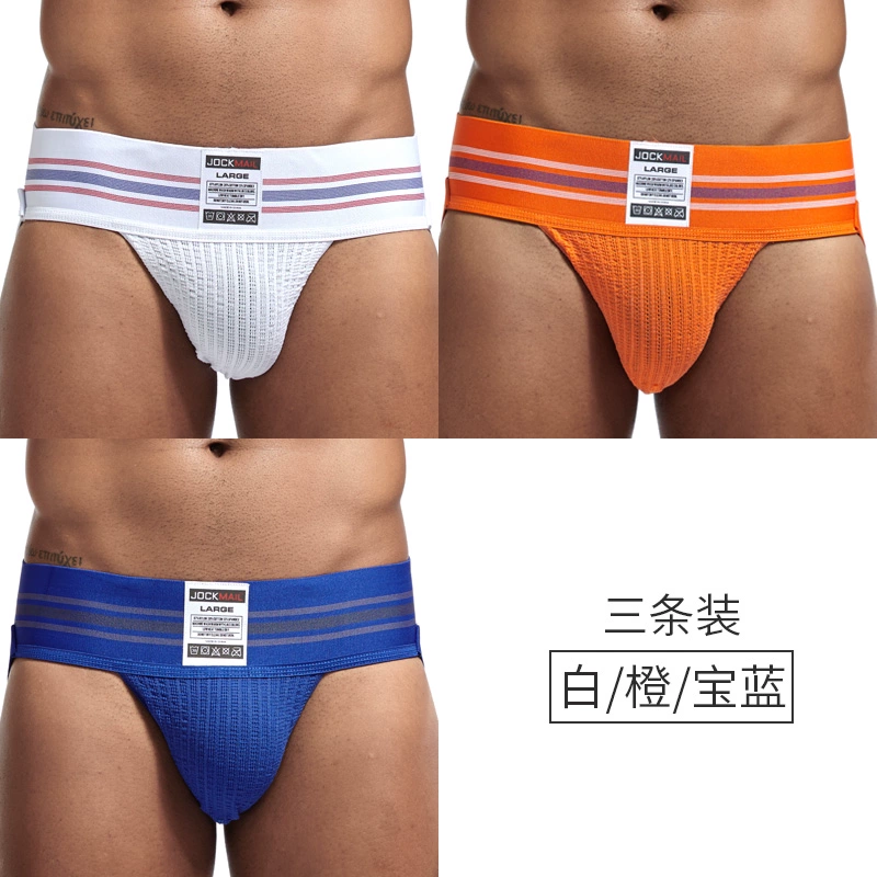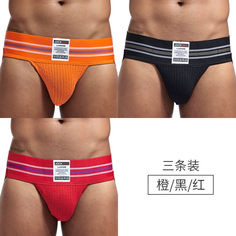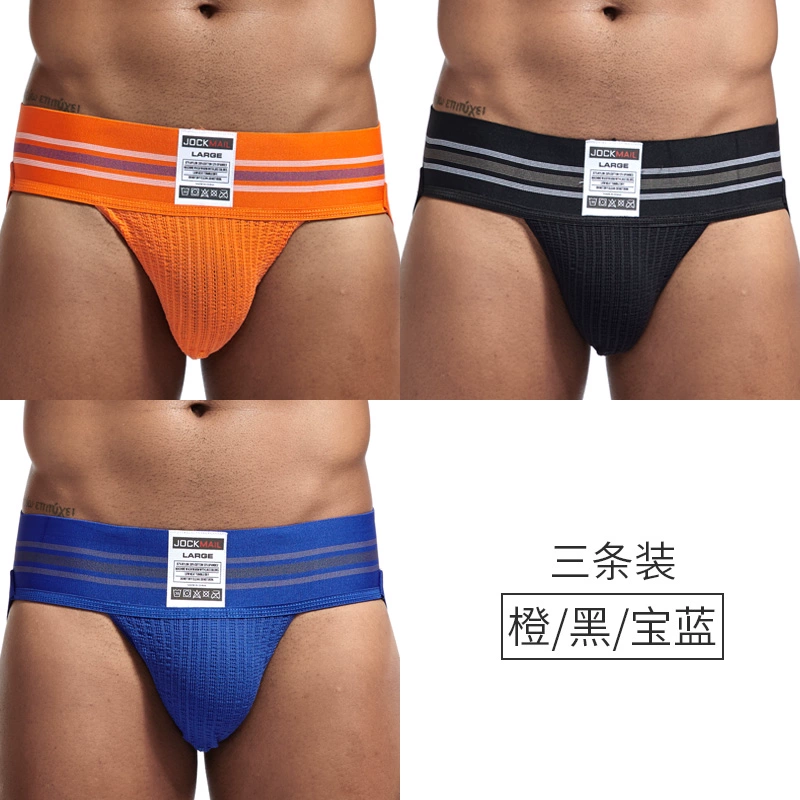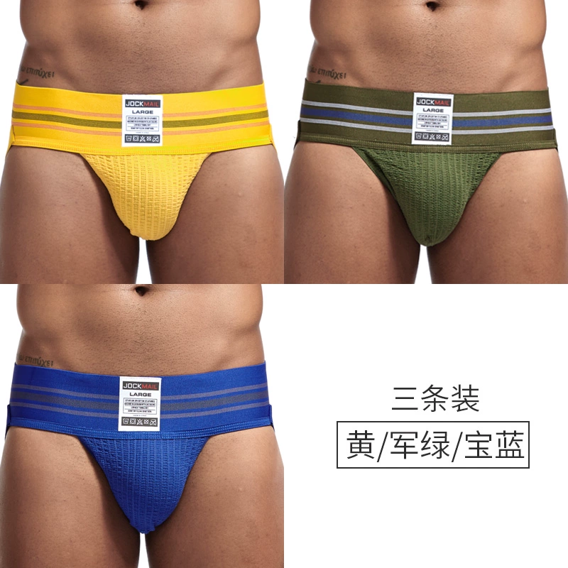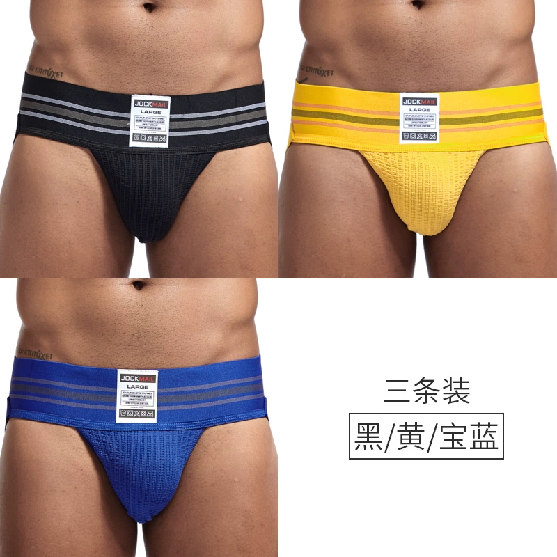 JOCKMAIL 3 pairs of men’s tits fashionable double tits U convex underwear comfortable elastic pure cotton breathable hip-exposed sexy thong